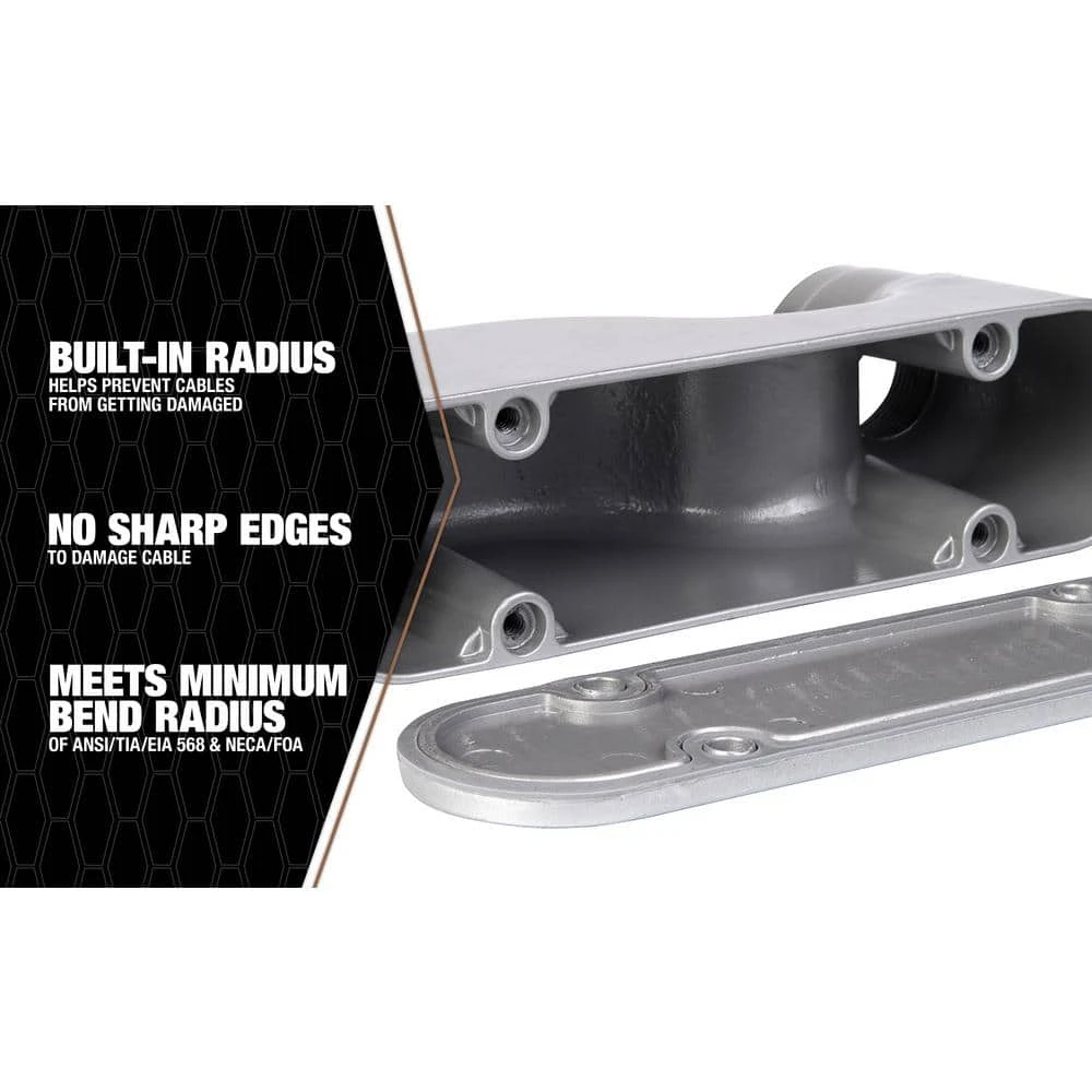 Unlike traditional LBs that have a sharp 90-degree corner, Smart LB conduit bodies have a built-in radius that helps prevent cables from getting caught or damaged when pulled around corners. With no sharp edges to damage cable, the gentle bend radius meets ANSI/TIA/EIA 568 and NECA/FOA requirements for pulling optical fiber and twisted pair cable. Smart LBs are the only conduit bodies that are recommended by the BICSI TDMM 13th for telecommunication cable. Includes a gasketed cover for wet locations.