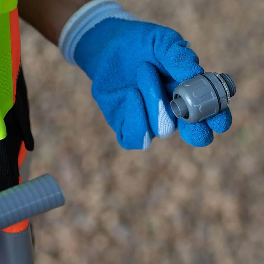 Southwire’s Non-Metallic Liquid Tight Connectors are made to use with Type B Non-Metallic Liquid Tight Conduit. There is no threading of conduit or tubing required. Southwire’s connectors give a superior liquid tight seal and pull out strength.