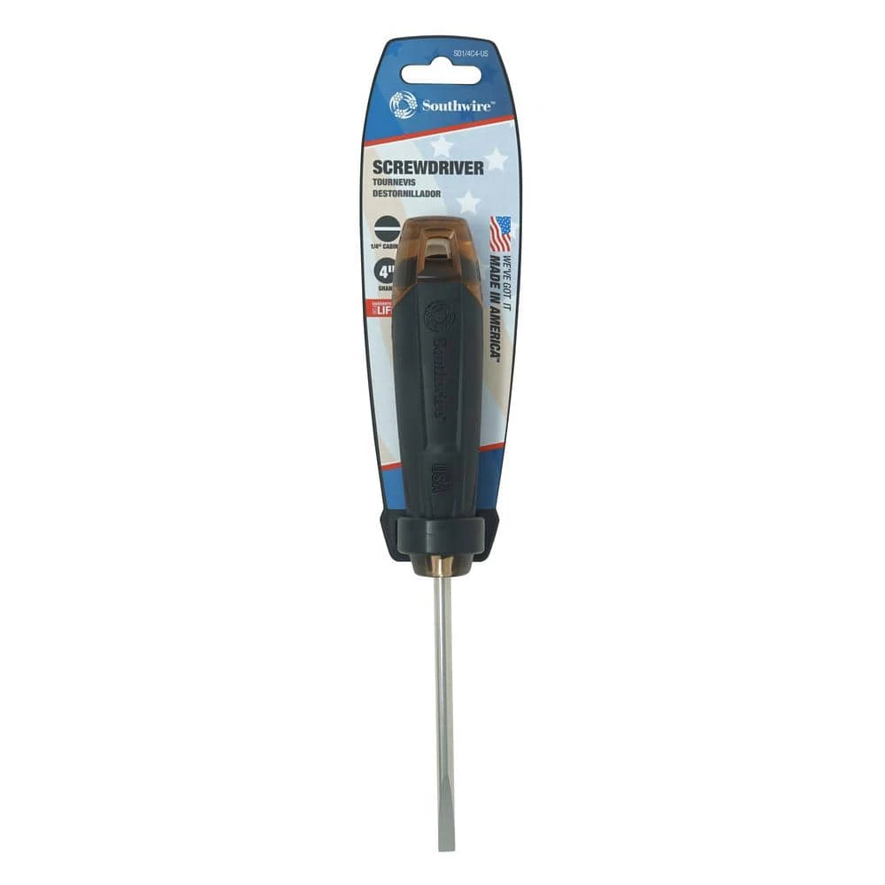 Southwire is proud to introduce our line of all Made in America drivers. The USA cabinet tip screwdriver has a 1/4 in. cabinet tip and 4 in. shank. The cushion grip handle allows for maximum torque and comfort. This driver has a 22% larger cushion grip handle that provides ultimate comfort and maximum torque as compared to previous generations. The corrosion resistant shank ensures durability to withstand damaged, allowing for a longer life. This screwdriver comes with high quality, precision machined tips for an exact fit.