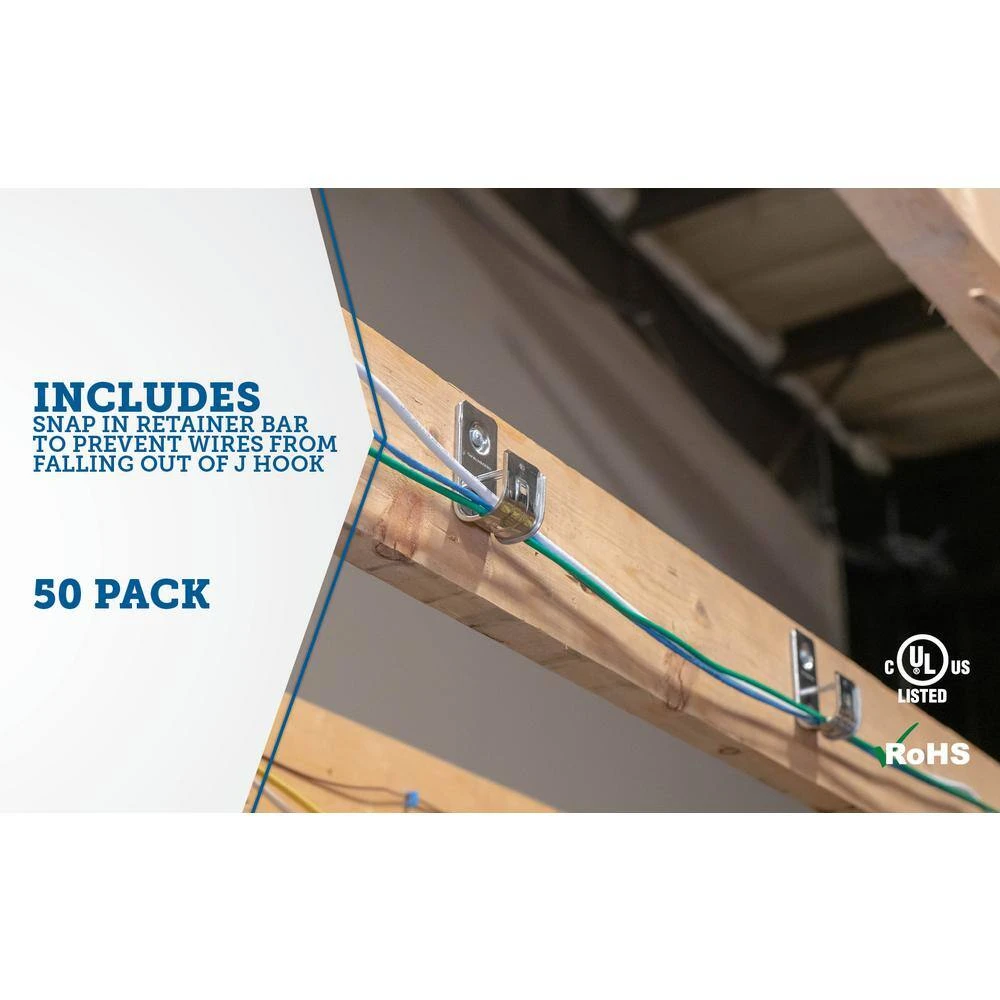 - Includes snap in retainer bar to prevent wires from falling out of J-hook