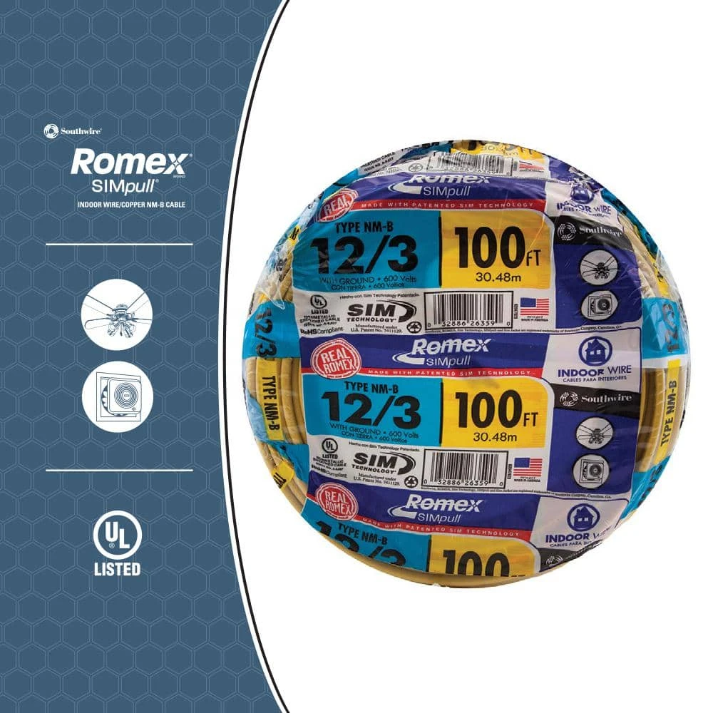 Wire residential indoor branch circuits for outlets, switches and other loads with Southwire Romex SIMpull Type NM-B Cable. SlikQuik jacket allows for 50% reduction in pulling force for easier installation. May be run in air voids of masonry block or tile walls not subject to excessive moisture and dampness.