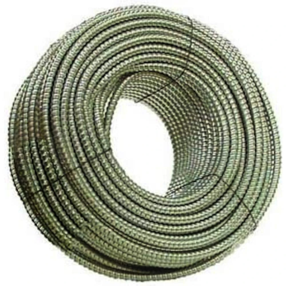 Southwire Armorlite Type MC Cable is constructed with soft-drawn copper, Type THHN/THWN conductors rated 90C dry available in sizes 14 AWG through 2 AWG and a green insulated grounding conductor. The conductors are cabled together and a binder tape bearing the print legend is wrapped around the assembly. Aluminum interlocking armor is applied over the assembly.
