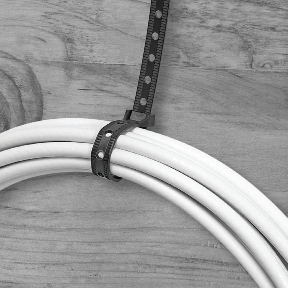 Secure wire bundles and harness components quickly on the jobsite with our innovative and versatile Cable Tie. Its patent pending design eliminates the need to carry wire clamps, hose clamps, loop clamps and countless other items needed to get the job done. Southwire cable ties, the tie that beats all ties.