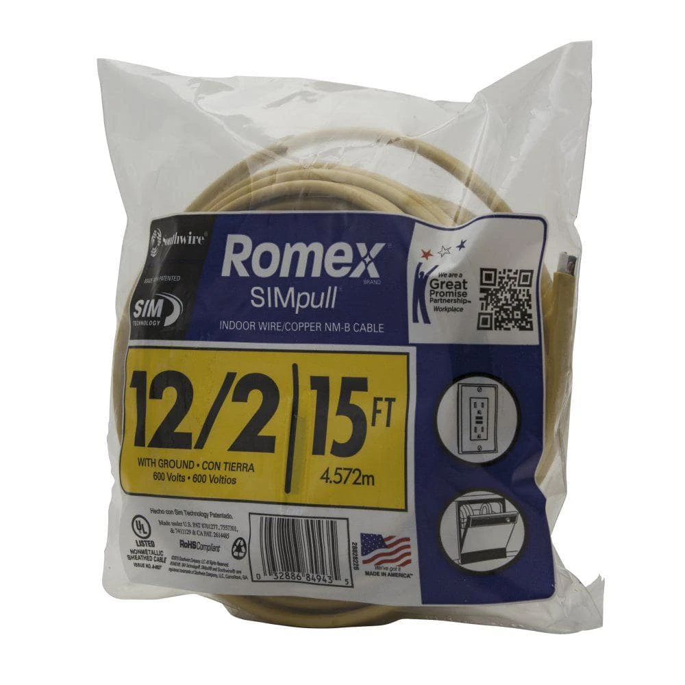 Southwire Romex Brand SIMpull NM-B (nonmetallic-sheathed) cable may be used for both exposed and concealed work in normally dry locations at temperatures not to exceed 90C (with ampacity limited to that for 60C conductors) as specified in the National Electrical Code. NM-B cable is primarily used in residential wiring as branch circuits for outlets, switches, and other loads. NM-B cable may be run in air voids of masonry block or tile walls where such walls are not wet or damp locations. Voltage rating for NM-B cable is 600 volts.