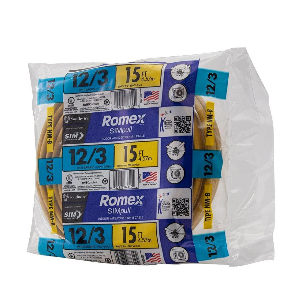 Wire residential indoor branch circuits for outlets, switches and other loads with Southwire Romex SIMpull Type NM-B Cable. SlikQuik jacket allows for 50% reduction in pulling force for easier installation. May be run in air voids of masonry block or tile walls not subject to excessive moisture and dampness.