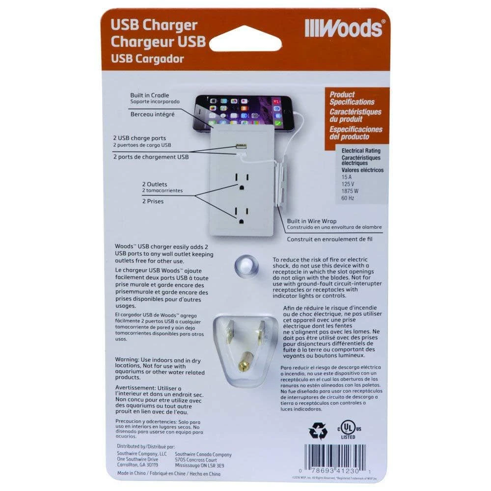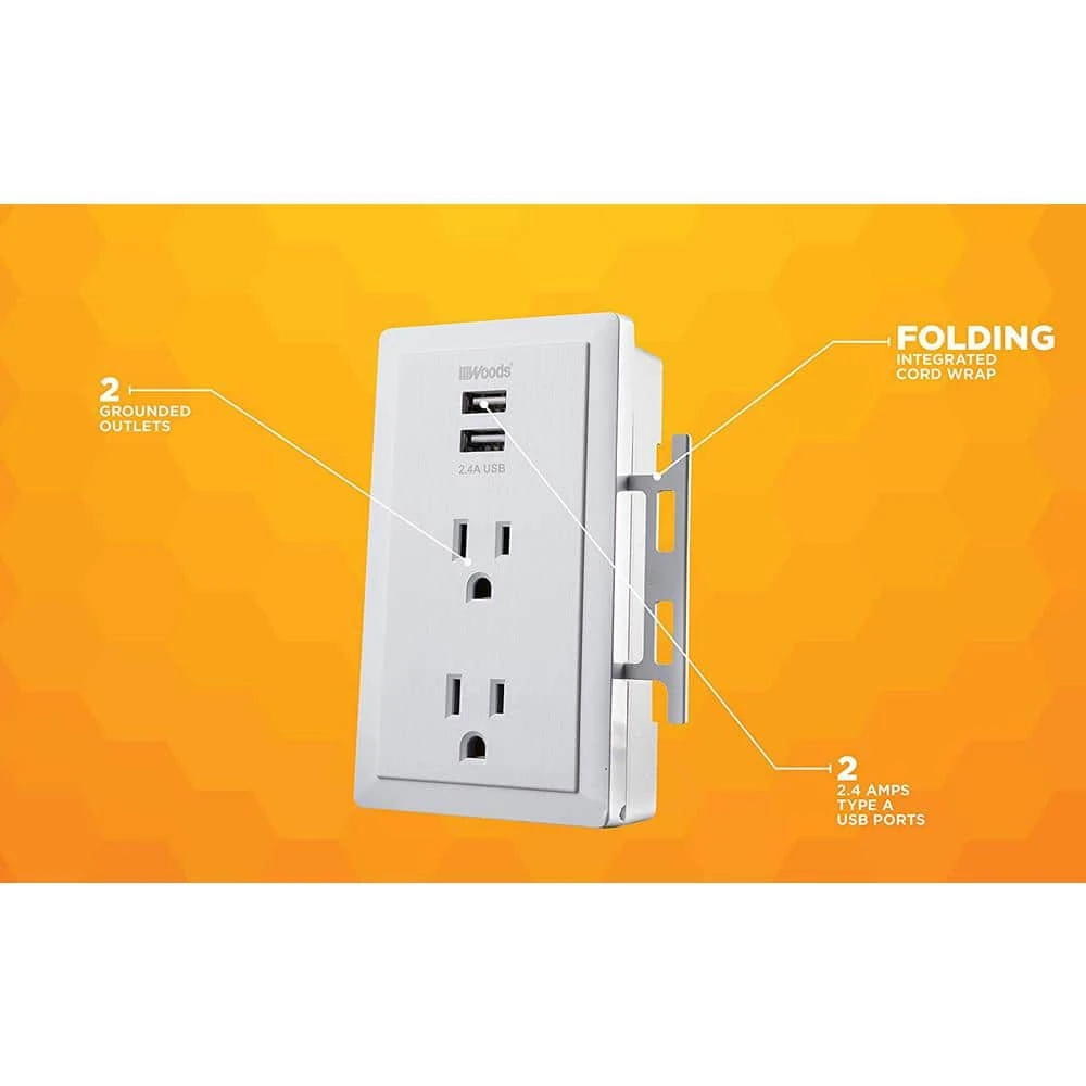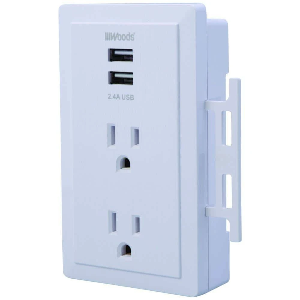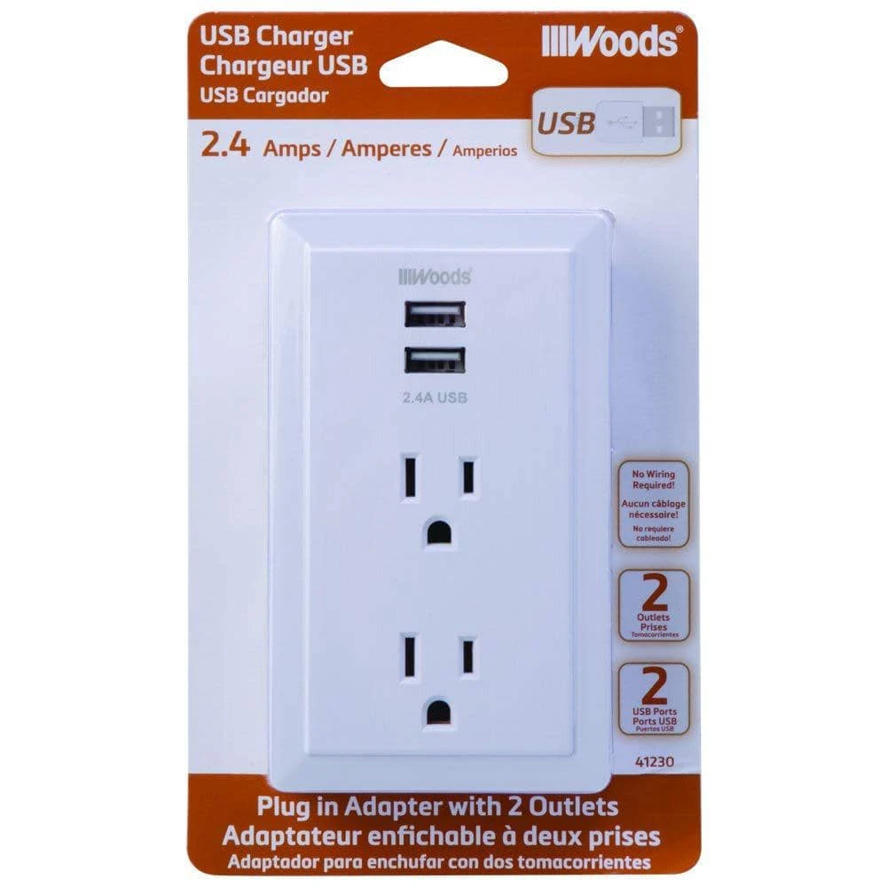 Outlets are always a premium when you need to charge your mobile Devices. No Wiring required. Woods plug in USB charging outlet plugs right into the existing outlet and adds 2 USB ports with 2.4 Amp of charging power.