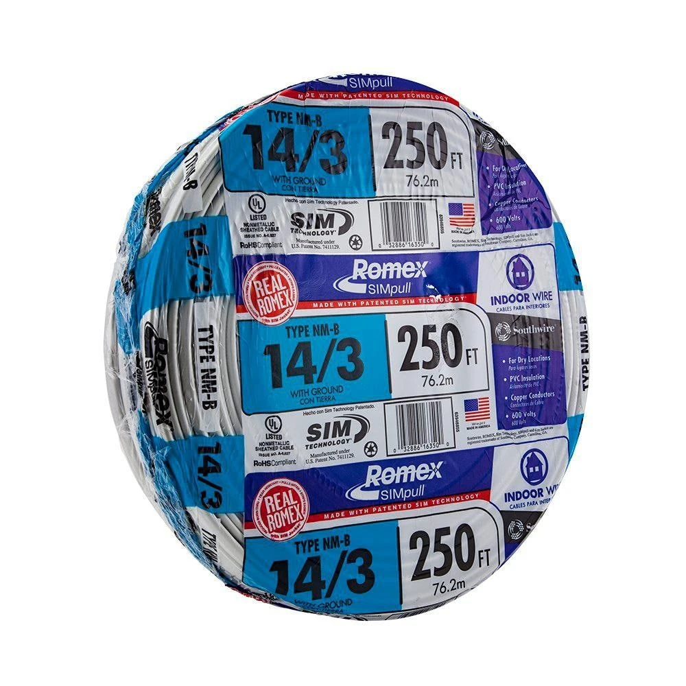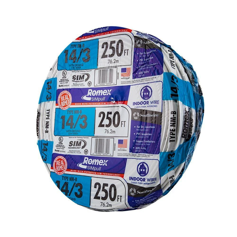 Wire residential indoor branch circuits for outlets, switches and other loads with Southwire Romex SIMpull Type NM-B Cable. SlikQuik jacket allows for 50% reduction in pulling force for easier installation. NM has a heat capacity of 90 degree C and a usage rating of up to 600-Volt.