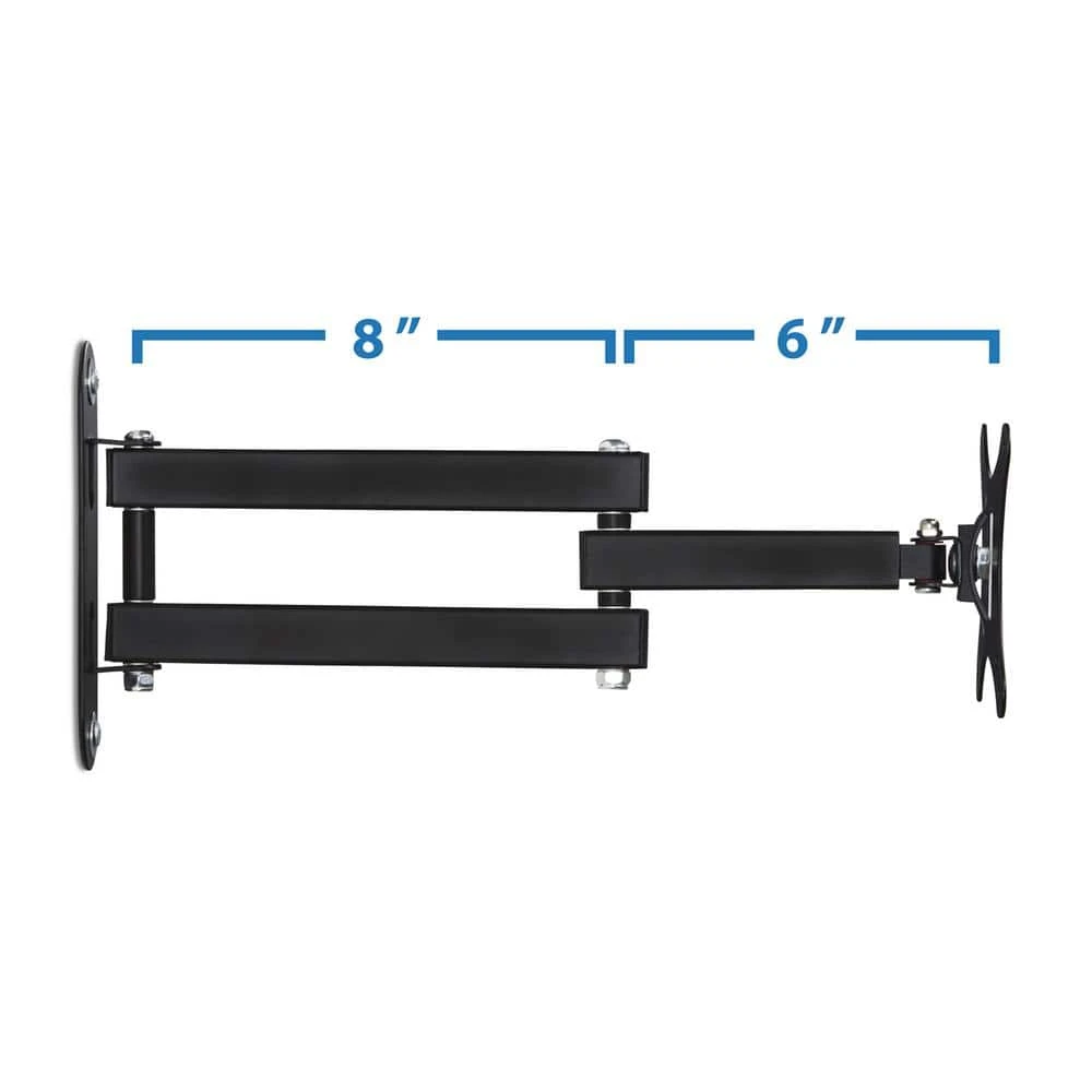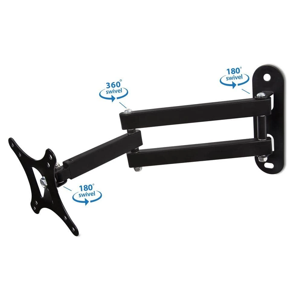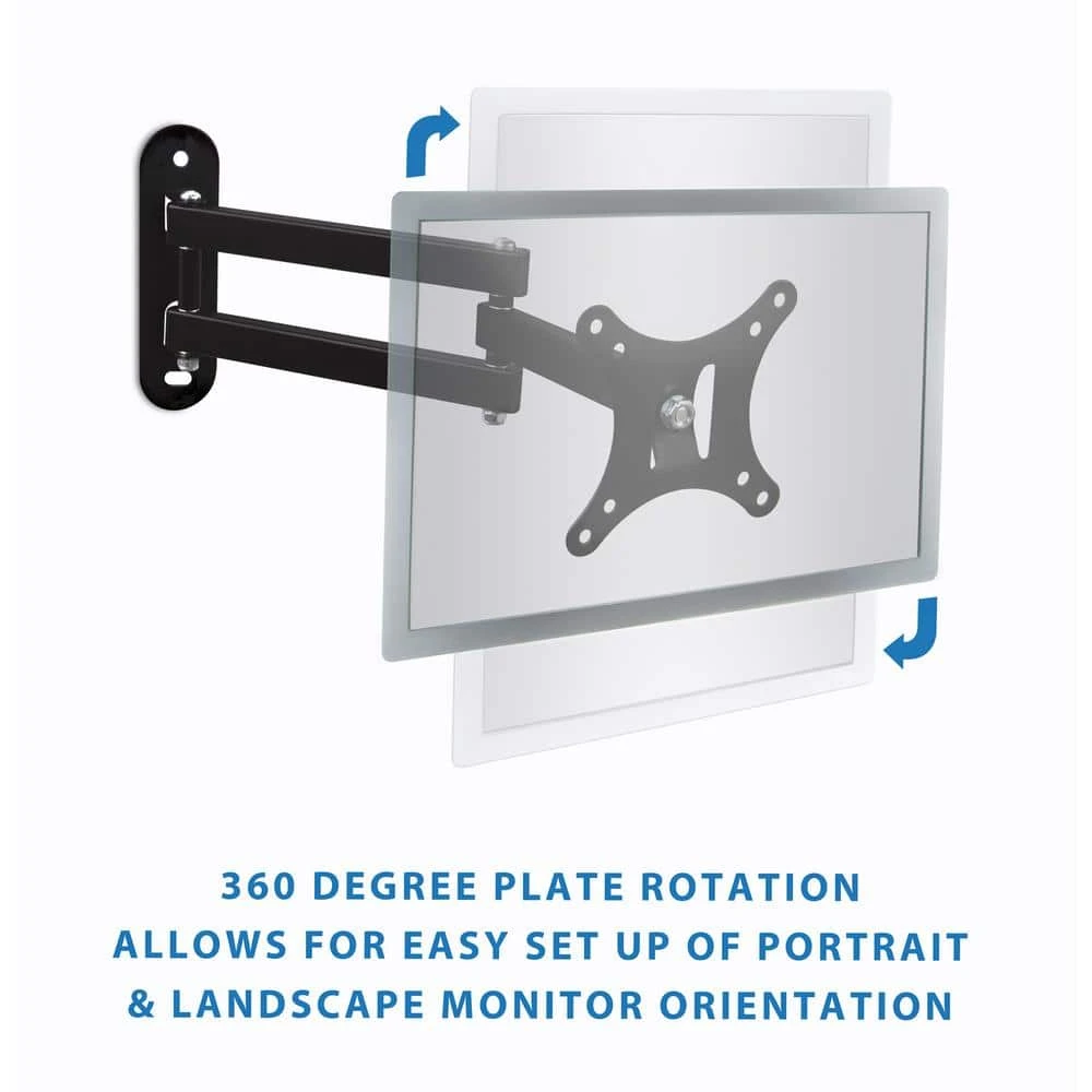 Mount-It. Small TV Monitor Wall Mount Arm integrates fashion with function, delivering ergonomic performance with style. This flat panel display wall mount will easily mount to a single wall stud. It provides full-motion capability through its 3 articulating joints and the tilt and rotate function at the monitor plate. The increase in viewing comfort helps to reduce eye, back and neck strain. Swift and easy movements and adjustments. The VESA wall mount bracket is ideal for classrooms, offices, homes, public area, industrial settings, gaming, trading and plenty more uses, yet.