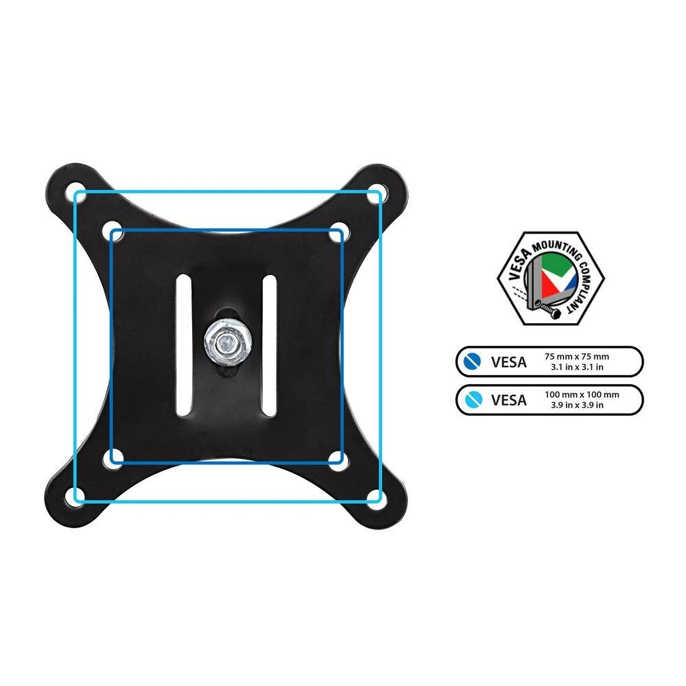 - Fits one computer screen or television 19 20 21 22 23 24 25 26 27 inches in size, with a maximum support weight of 40 pounds, using the 75x75mm or 100x100mm VESA square bolt hole pattern found on the back of the TV/monitor. Mounts to a single stud on the wall.