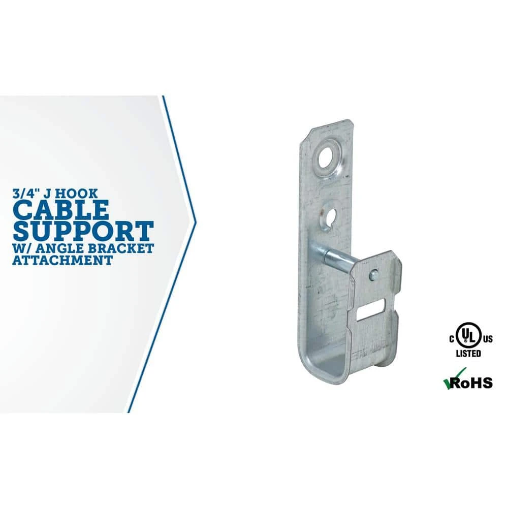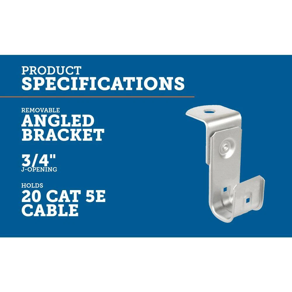 This J-Hook has a cable fill rate of 20 Cat5E cables. A retainer clip is included. This J-Hook is UL, CUL and RoHS compliant. 50-pack, perfect for your project.