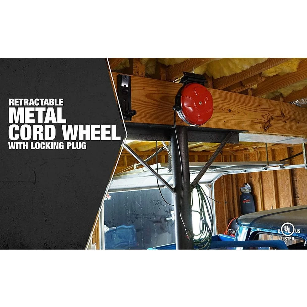 30 ft. 14/3 SJTW Retractable Cord Reel with Locking Plug. Mounting hardware included. Easy switchover of accessories. Housing made of heavy duty steel. Industry approvals: UL Listed, cUL Listed. Intended for anywhere you need extra light or power. The Woods brand is a registered trademark of Coleman Cable Inc.