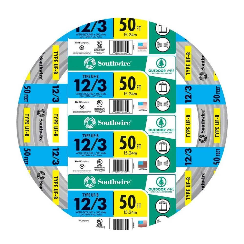 Southwire’s copper UF-B cable is used in applications that include outside lamp posts, pumps and other loads. It can also be used for outbuildings such as garages and barns. UF-B feeds from a distribution point in an existing building. UF-B has a heat capacity of 90°C and is rated at 600-Volt. UL Listed and CSA Certified.