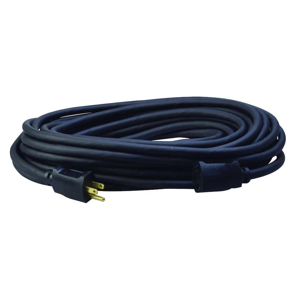 This 50 ft. Black Extension Cord has an extra durable oversized design for heavy-duty usage. The molded plugs prevent accidental bending or breaking when on the job, workshop, or at home. The jacket is highly resistant to a variety of elements including abrasion, chemicals, and oil. Additionally, this product is UL listed for your safety.