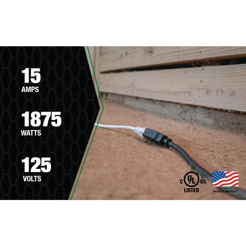 - Heavy-duty 50 ft. all-copper wire extension cord recommended for use with heavy-duty equipment and tools