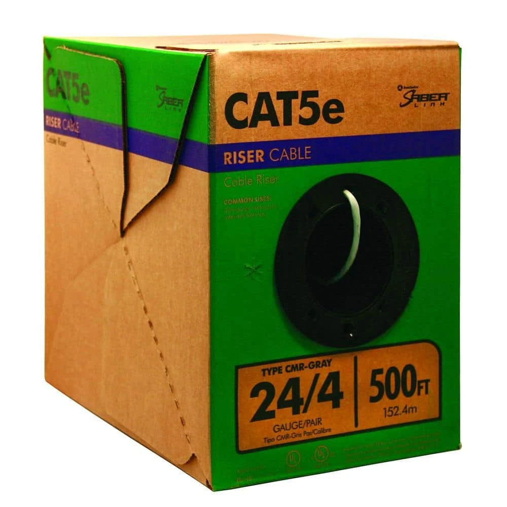 Run the Southwire 500 ft. Gray 24/4 CAT5e CMR Riser Cable in walls and under raised floors for computer network & data wiring. This cable features 4 pairs of copper conductors and PVC insulation. This cable is UL Listed and cUL certified.