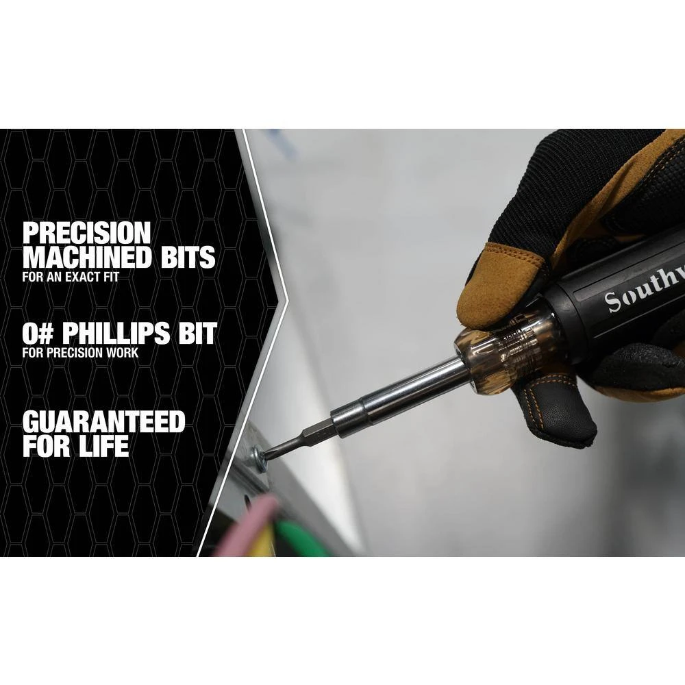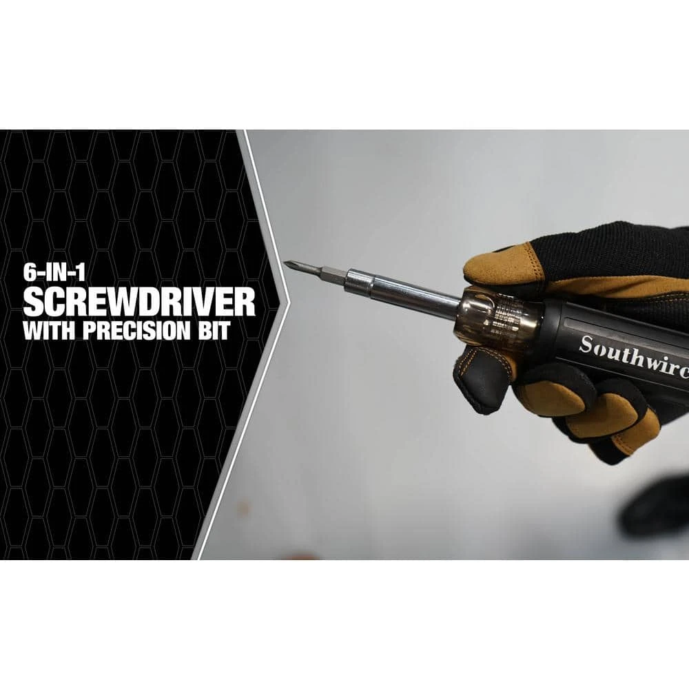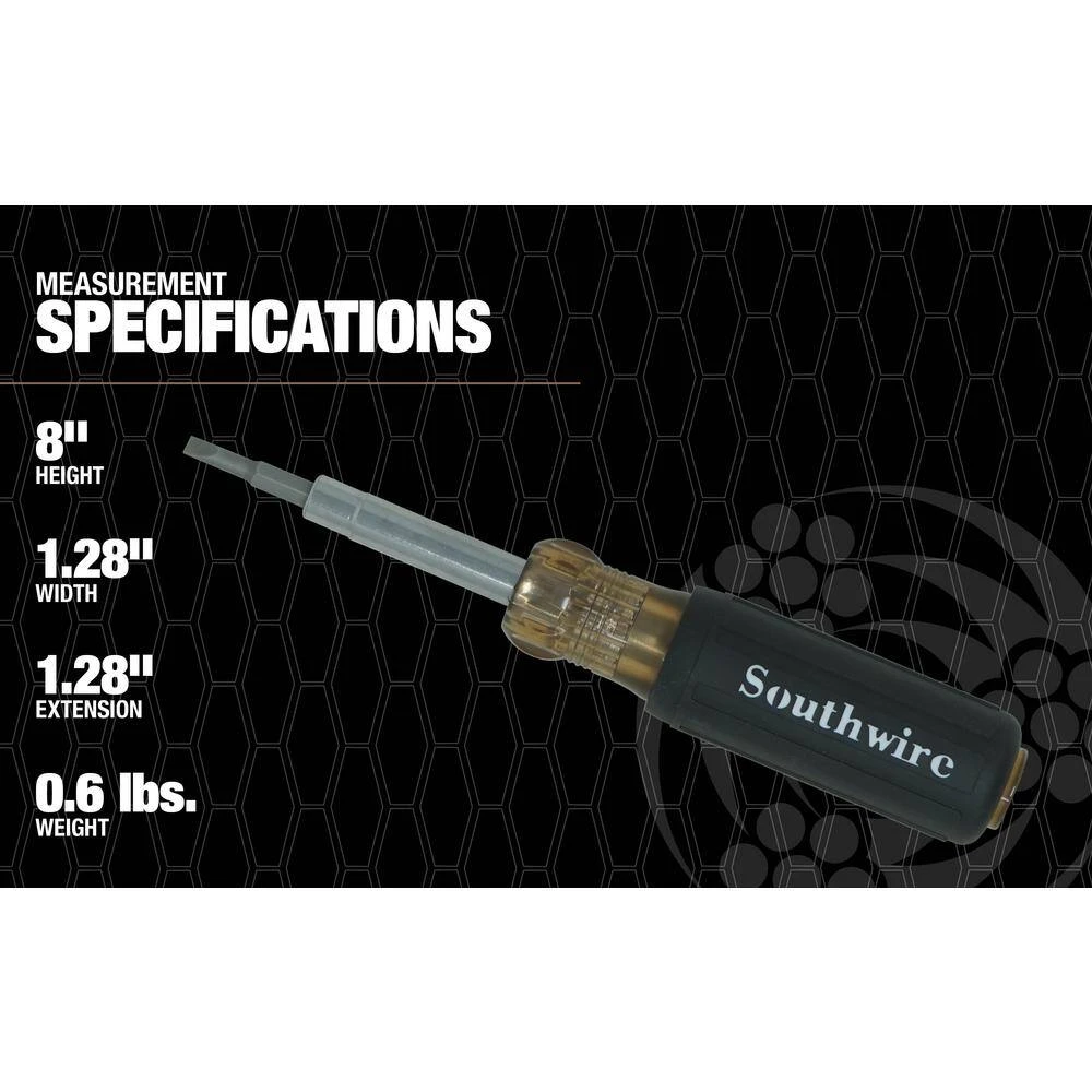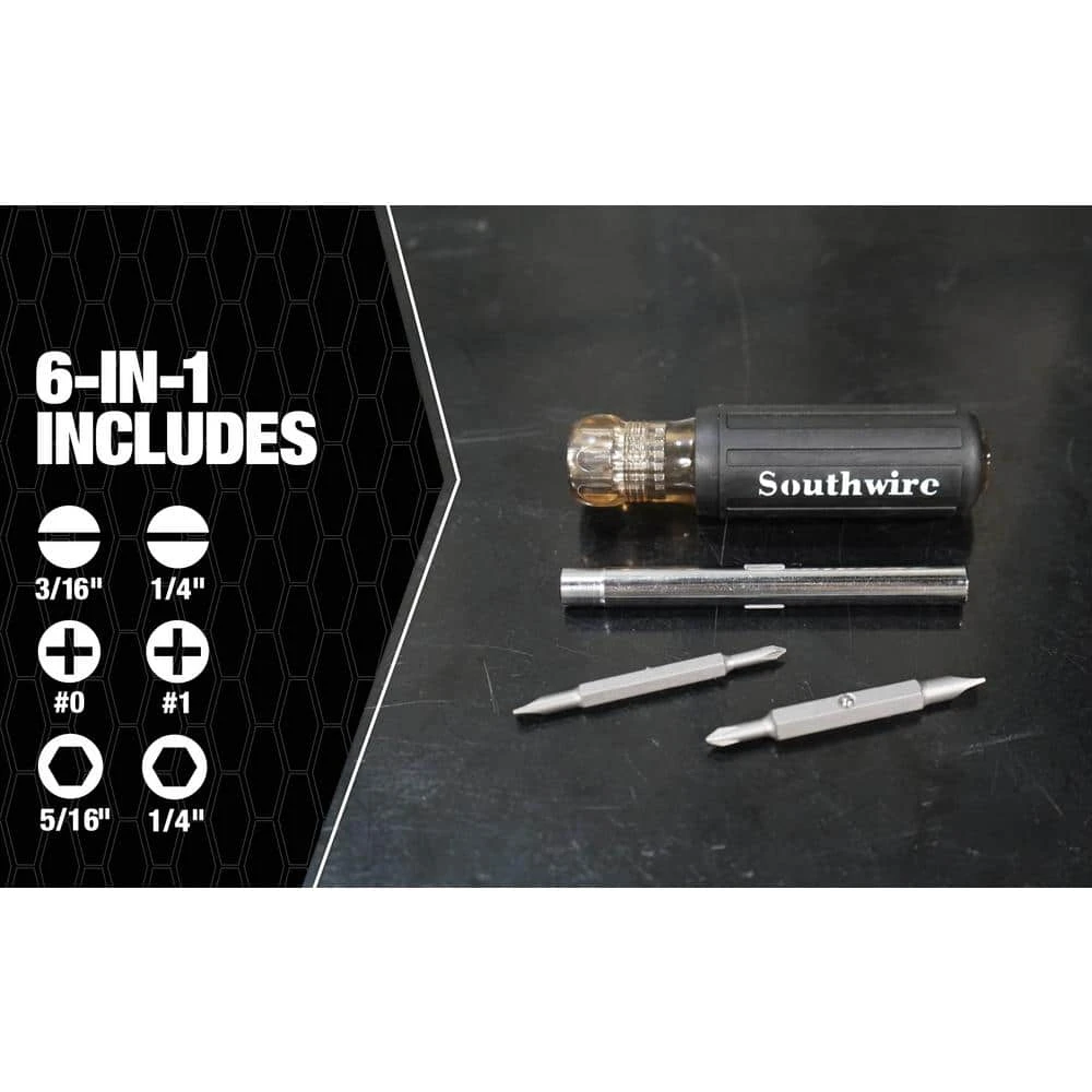 The SD6N1P multi-bit screwdriver provides its user with a diverse range of functions. with its various nut drivers, Phillips and slotted tips, this screwdriver the perfect tool to provide the various functions you may need on the job. 6-in-1 includes: 5/16 in, and 1/4 in. nut drivers, #1 and #0 Phillips 1/4 in. and 3/16 in. slotted tips. Southwire screwdrivers are backed by a lifetime no hassle warranty.