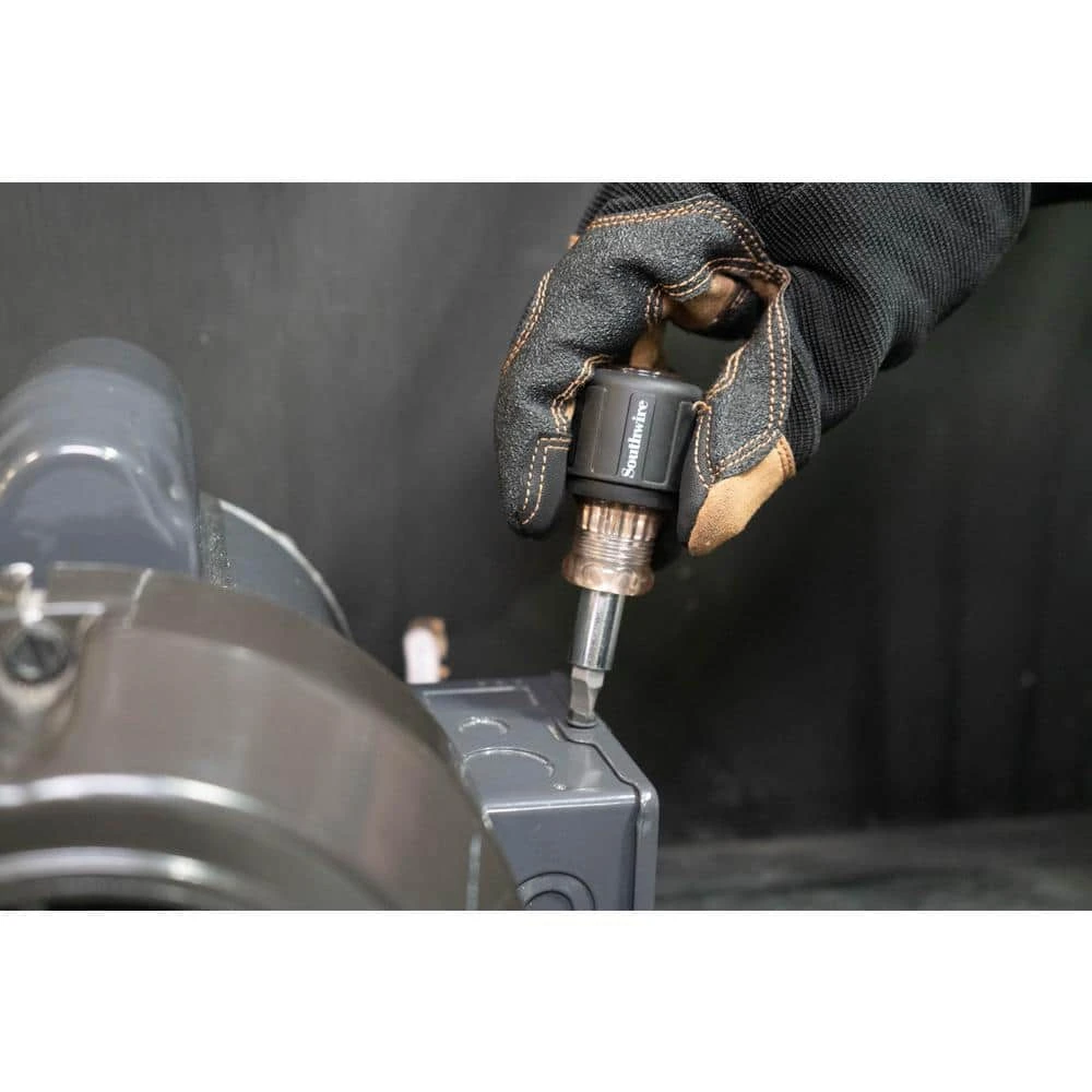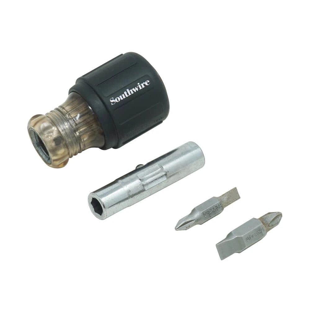 The 6-in-1 Multi-Bit Screwdriver features precision machined, quick change bits. Includes 2 double sided screwdriver bits and 1 double sided nut driver. Sizes include 5/16 in. and 1/2 in. hex, #1 and #2 Phillips, and 3/16 in. and1/4 in. slotted tips.