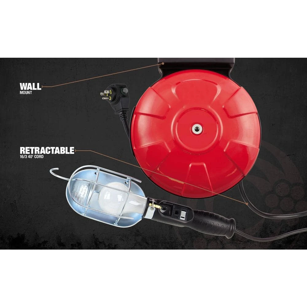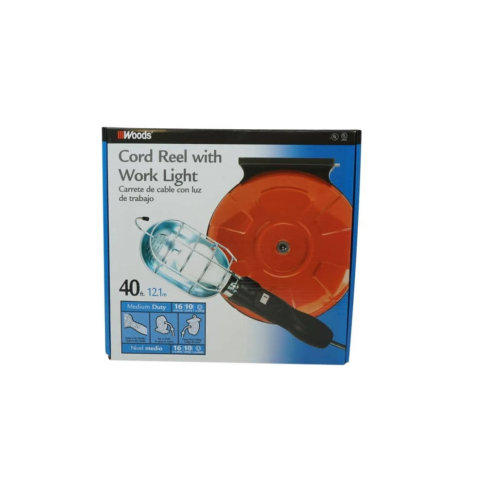 The Woods 48000 16/3 SJTW 40 ft. Retractable Cord Reel features a shielded trouble light with a heavy duty steel housing finished in red. The incandescent trouble light uses up to 75-Watt with an ON/OFF switch and an extra power outlet in the handle. Bring power and light where you need it and the cord retracts for easy storage. Great for your work shop and garage and includes mounting hardware. UL Listed. The Woods 48000 16/3 SJTW 40 ft. Retractable Cord Reel comes with a 1-year limited warranty that protects against defects in materials and workmanship. Coleman Cable, Inc. is a leading manufacturer and innovator of electrical and electronic wire and cable products for the security, sound, telecommunications, electrical construction and retail, commercial, industrial, irrigation, HVAC and automotive markets. Coleman Cable, Inc. offers a family of leading brands such as Moonrays, Fire Shield and Woods. The Woods brand of timers and home controls bring simplicity to your life, by maximizing convenience, security and energy savings.