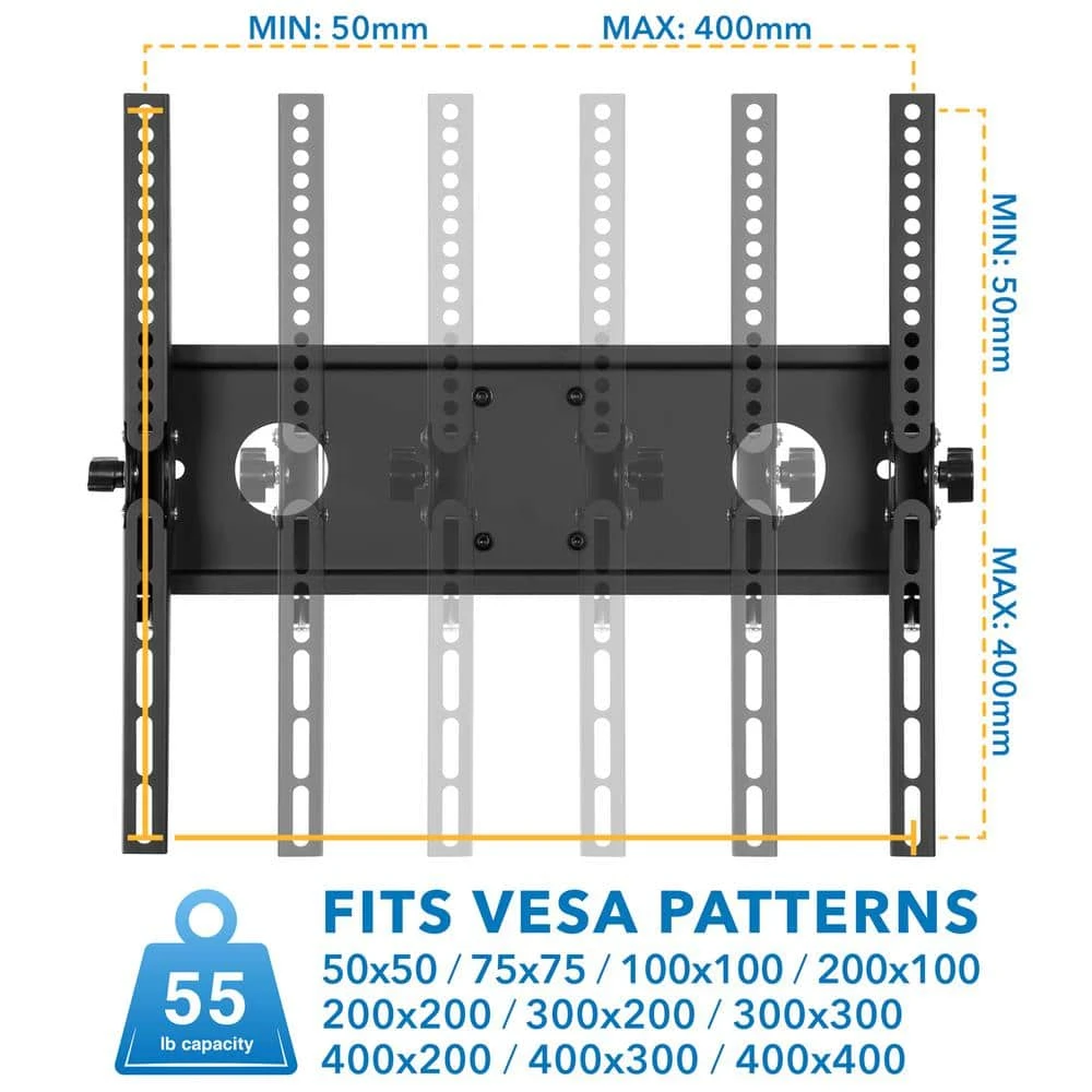 - Compatibility: VESA patterns up to 400 mm x 400 mm and most screens between 23 in. to 55 in.