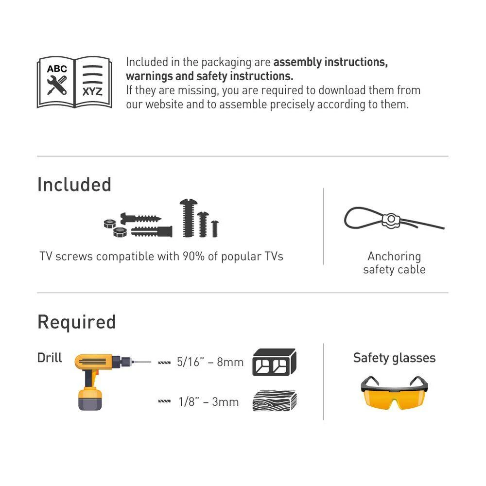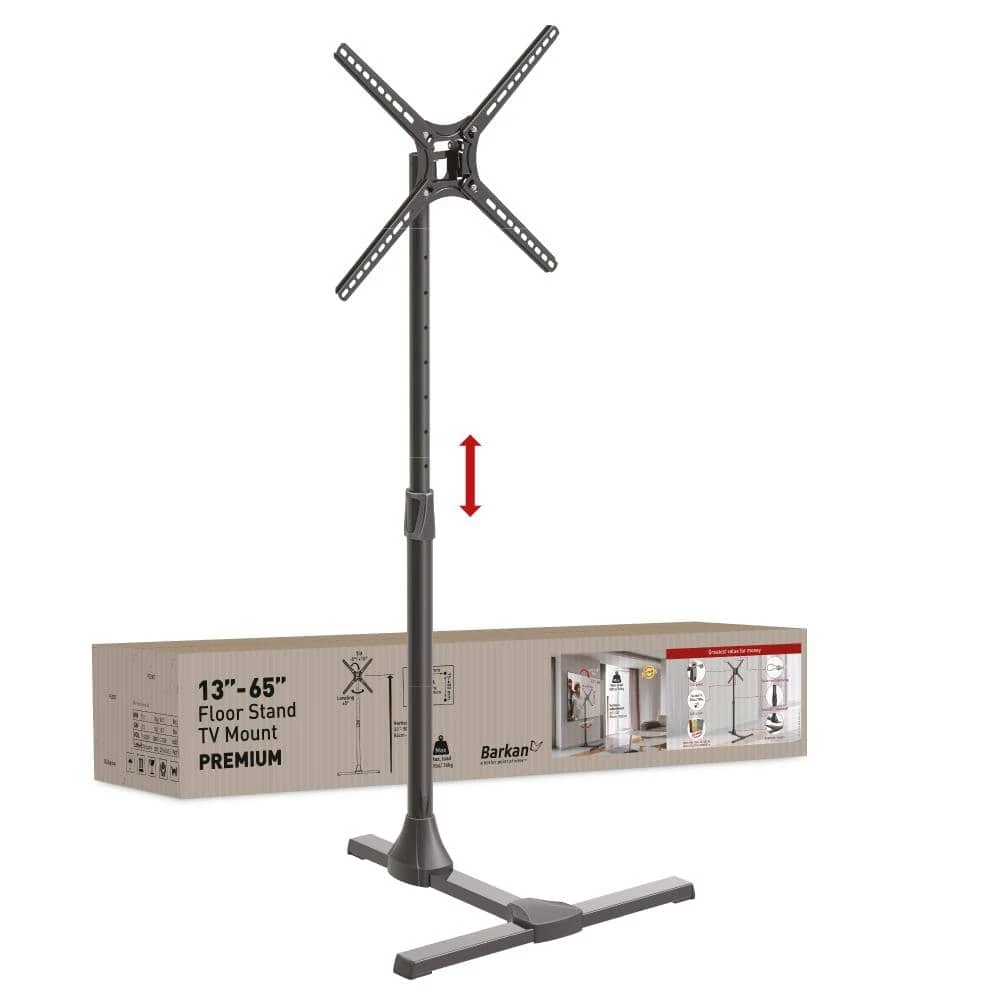 The Barkan floor stand fits flat / curved screens sizes 13 in. – 65 in. and weight up to 80 lbs. The included wall anchorage kit prevents the stand from tipping. The stand features 9 different height options for a perfact viewing angle, as well as a cable management to hold the cables. It fits TVs with VESA standard (Bracket Mounting Holes Patterns) 75×75, 100×100, 100×200, 200×100, 200×200, 300×300, 300×400, 400×200, 400×300, 400×400 mm and non VESA up to 400×400 mm. In order to offer a better point of view, the stand has a tool-free tilt from -5° till 10°.The stand has a 5-year warranty and its color is black.Please check the list of included screen-connection screws in the assembly instructions. If your screen requires different screen-connection screws, please purchase them in your local hardware store or consult us at [email protected]. Product installation – please make sure to follow the assembly instructions precisely. If you have any questions contact us. If you are satisfied with the product, please leave a review. If you are not satisfied please contact us at https://www.barkanmounts.com/support and we will solve the problem for you.