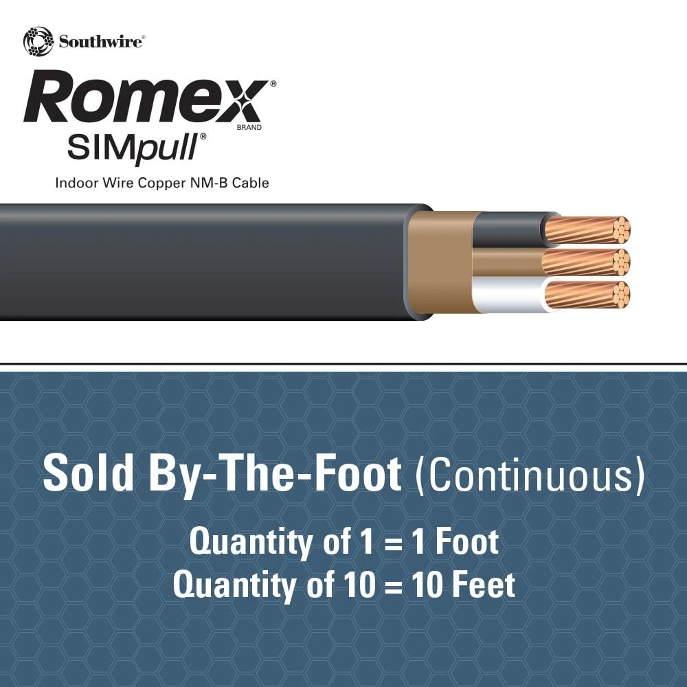 Wire residential indoor branch circuits for outlets, switches and other loads with Southwire Romex SIMpull Type NM-B Cable. SlikQuik jacket allows for 50% reduction in pulling force for easier installation. May be run in air voids of masonry block or tile walls not subject to excessive moisture and dampness.