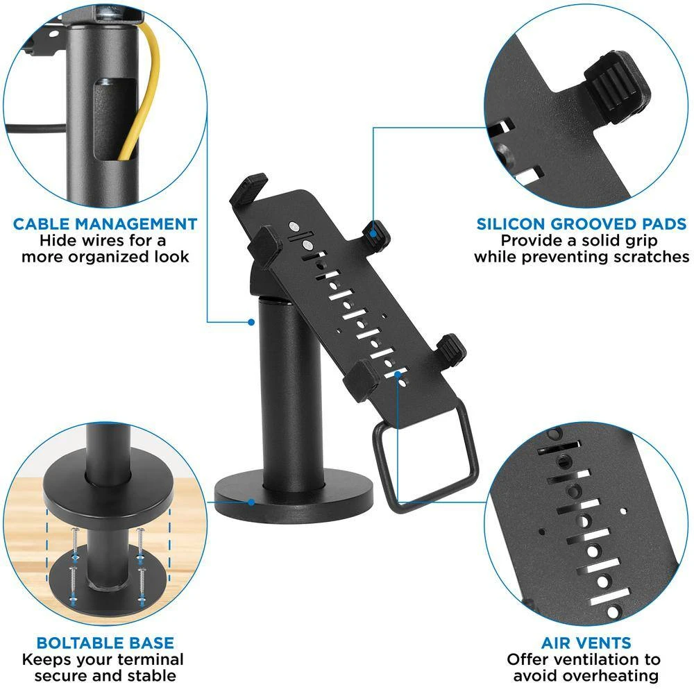 - Steel construction gives Verifone VX 820 POS stand durability for use as counter payment terminal