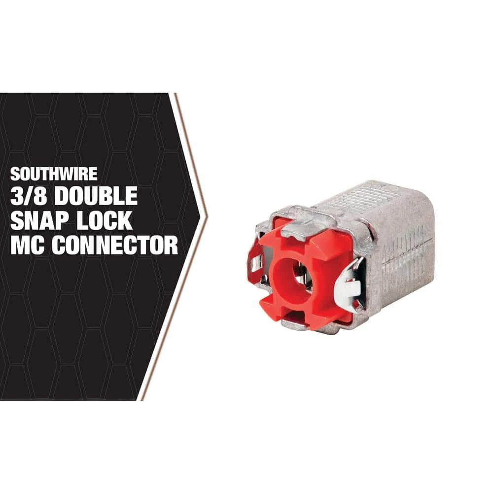 Introducing the latest innovation in electrical fittings, the Double Snap Lock BX connector. It provides significant labor savings when installing metal clad or armored cable to steel boxes or enclosures. No tools are required when assembling to the cable or the box. The anti-short bushing is pre-assembled and will not fall out during transit or installation. Simply snap the cable to the fitting and snap the fitting into the box. The Double Snap Lock can be easily removed without tools and is reusable. Patent pending.