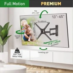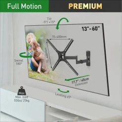 Barkan 29″ to 65″ Full Motion – 3 Movement TV Wall Mount, Black, Touch & Tilt, Screen Leveling by Barkan a Better Point of View