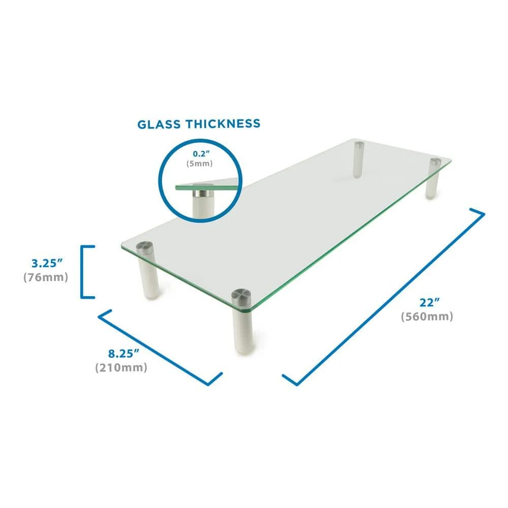 The MI-7263 monitor stand elevates your display to a more comfortable height. Raising your monitor up helps improve ergonomics and reduce neck and eye strain. The contemporary design with premium glass and aluminum materials, make it a perfect fit for any room or office. Opens up desk space by allowing you store accessories under the riser.