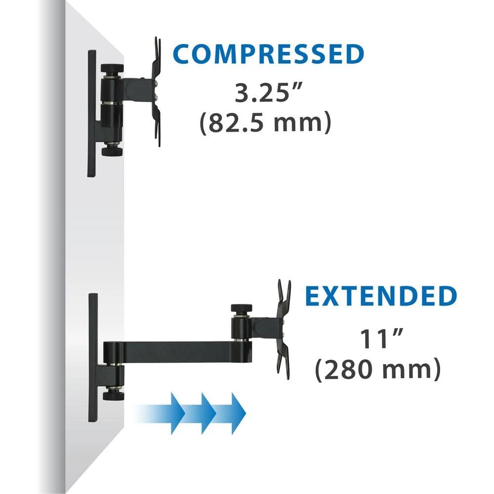 The MI-405 articulating wall mount allows for smooth and quick motions. The articulating arm extends to 11 in. to bring your screen to your preferred distance. The tightening knob allows you to easily make frequent adjustments and secure the display in position. Improve ergonomics, increase productivity or just upgrade the aesthetics of the room with this space saving wall mount. Single stud installation is quick and easy. All necessary hardware and assembly instructions included.