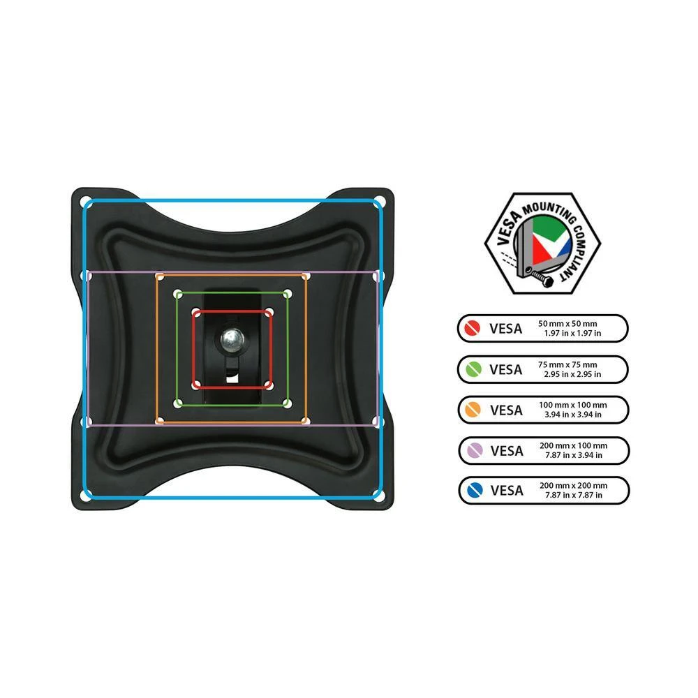 - VESA 50 mm x 50 mm, 75 mm x 75 mm, 100 m x 100 m, 200 mm x 100 mm, 200 mm x 200 mm