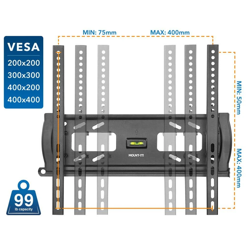 MI-2244T features an anti-theft design making it great for public spaces. Protect your investment and place a padlock on the mounting bar to keep your TV safe and secure in any environment. Tilt your TV up or down for a better view from anywhere in the room. This helps to reduce glare and creates a more comfortable way to watch if your TV is mounted higher on the wall.