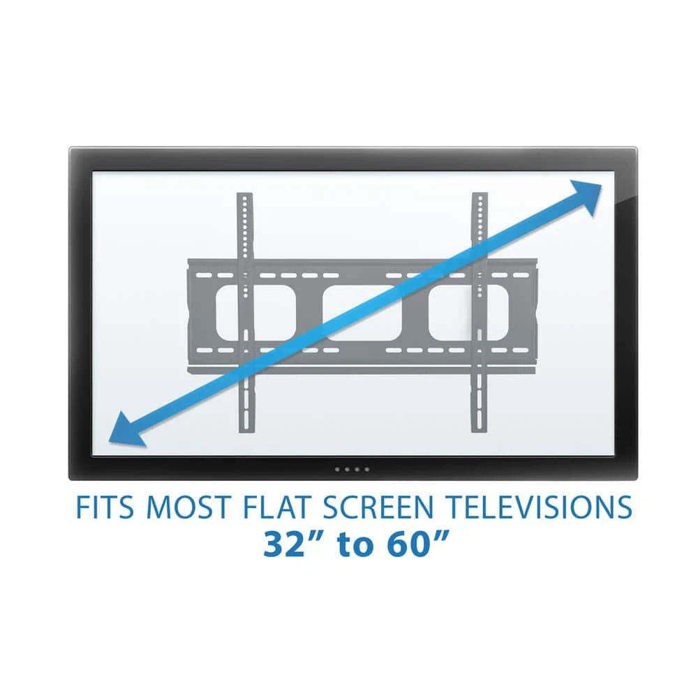 - Big Screen TV mounting bracket designed for large screen TV’s & monitors ranging between 32 – 60 inches. Ultra-slim TV mount design sits a mere 1 inches off the wall with cable management cutouts