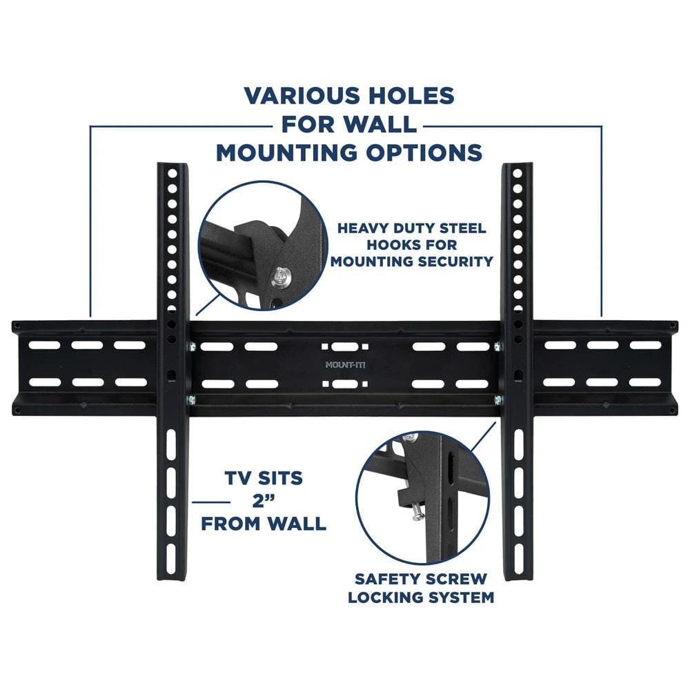 MI-3030XL combines the best of both worlds with a sleek minimal design, and a functional tilt adjustment to create a better viewing experience. Its heavy-duty steel construction safely and securely mounts your TV on the wall with a load capacity of up to 77 lbs. It features an integrated safety screw locking system for added security, giving you even more confidence when mounting your TV on the wall.