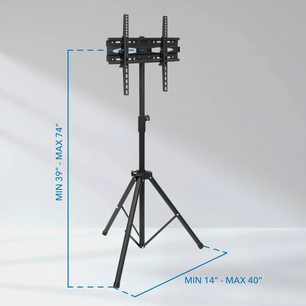 This height adjustable TV tripod stand makes it easy to create the ultimate viewing experience in any situation and makes it ideal for home and commercial use, including schools, conference rooms, hospitals and backyards. Adjust the height anywhere from 39 in. to 74 in. Each TV leg is made of reinforced steel and aluminum and fitted with a sturdy rubber grip to keep the stand locked in place. Easily assemble and disassemble into bags or backpacks for easy travel.