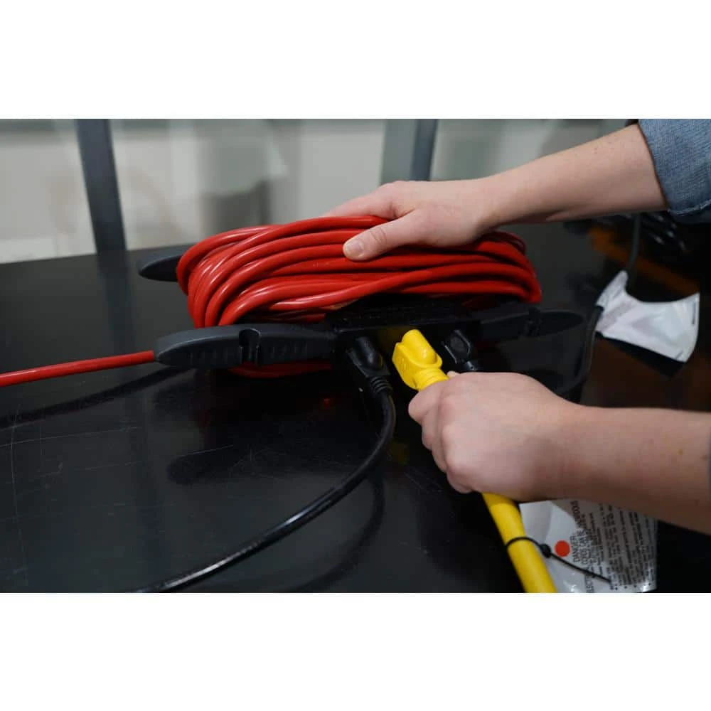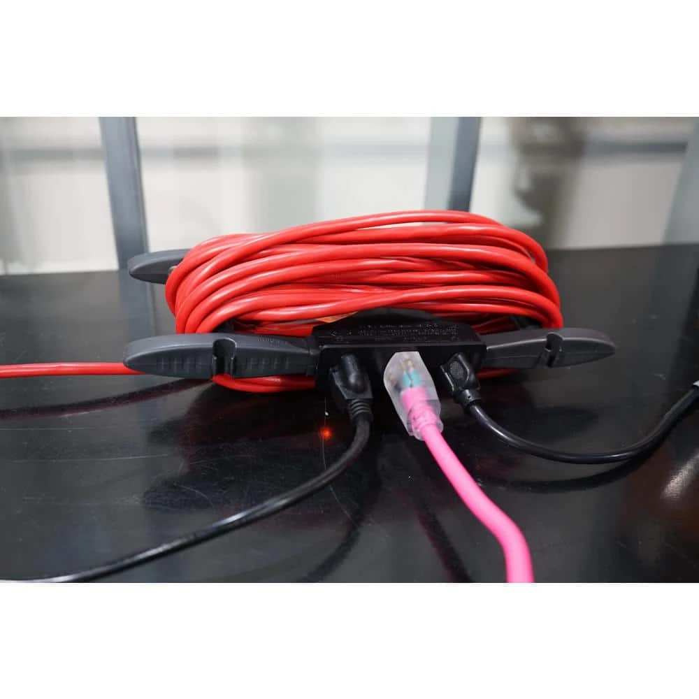 This 3-Outlet H-Rack Cord Management System conveniently organizes your cord when you are finished with it. It allows you to turn a single outlet cord into a triple outlet cord. It can store up to 50 ft. of 12 AWG wire.