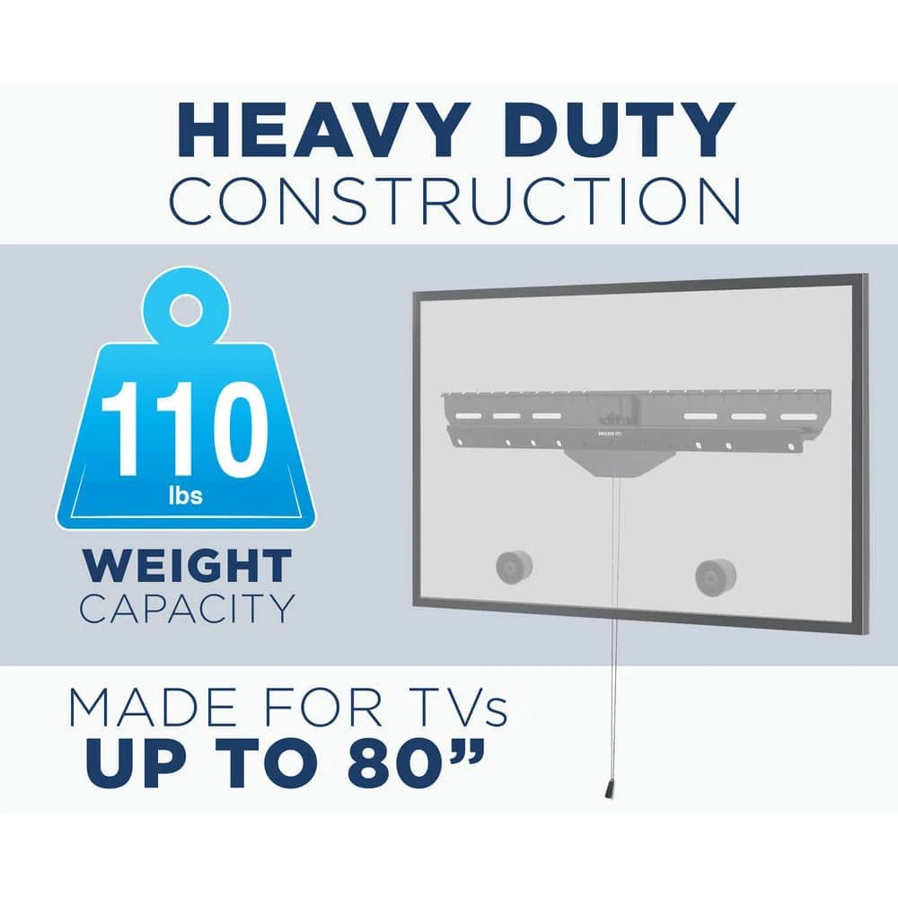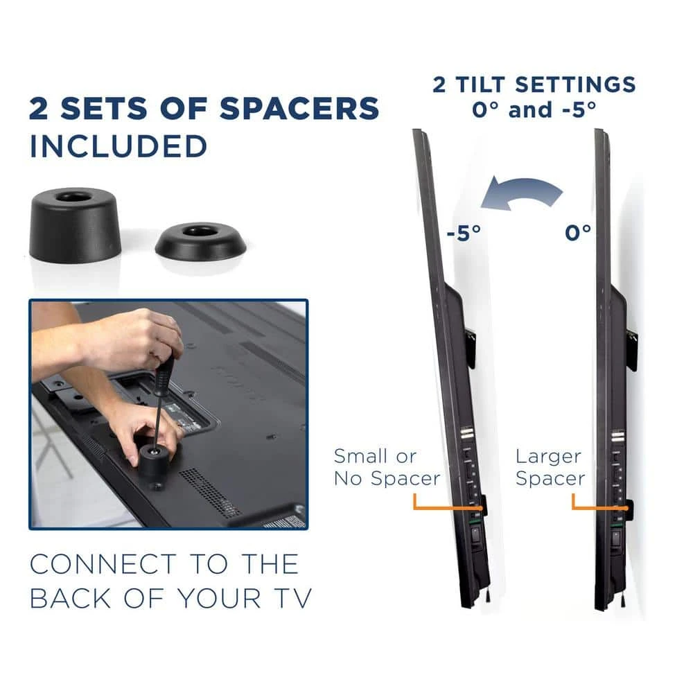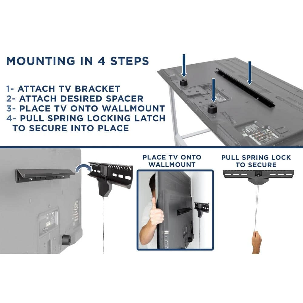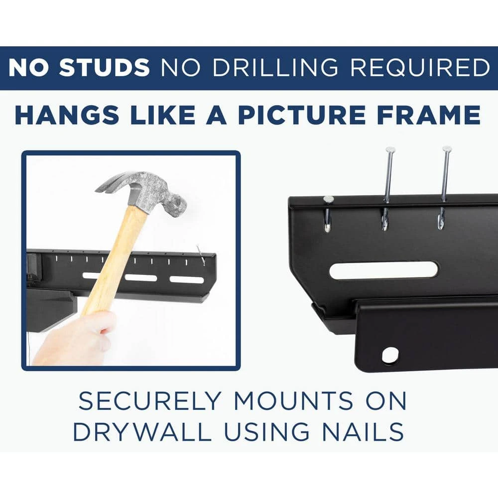 This low-profile TV mount easily and securely mounts to your wall without the need for wall studs. It is designed to hang like a picture frame, with included nails and does not require any drilling. It’s slim profile sits only 1.2 in. from the wall for a sleek and appealing look. Great for renters trying to reduce damage to their wall.