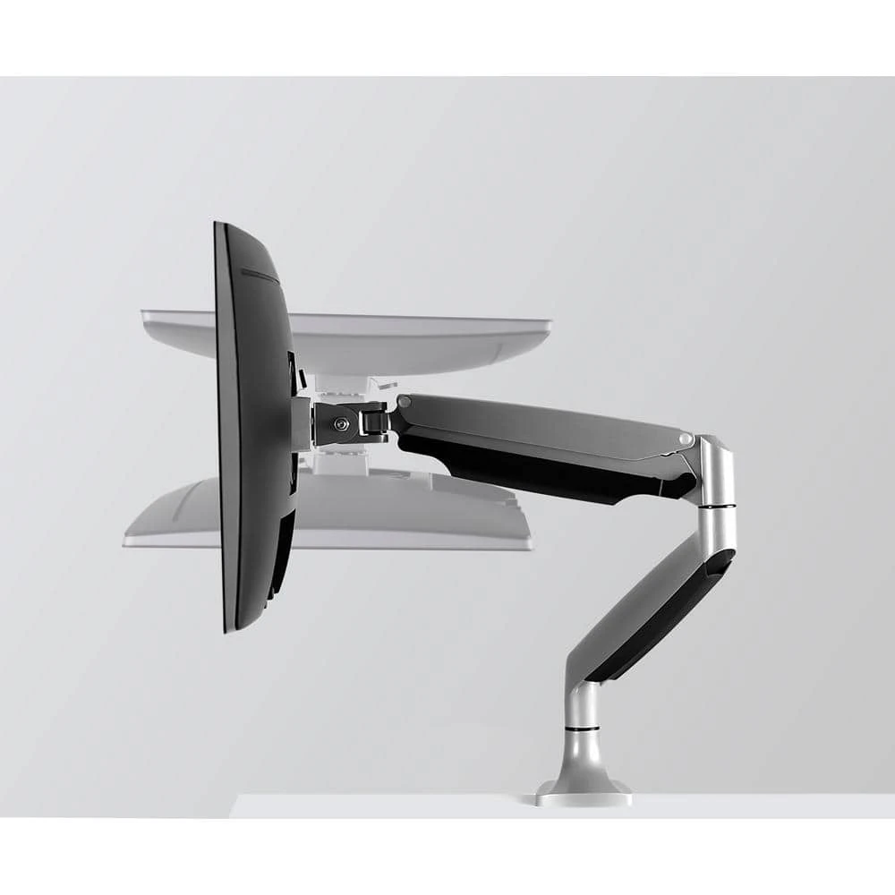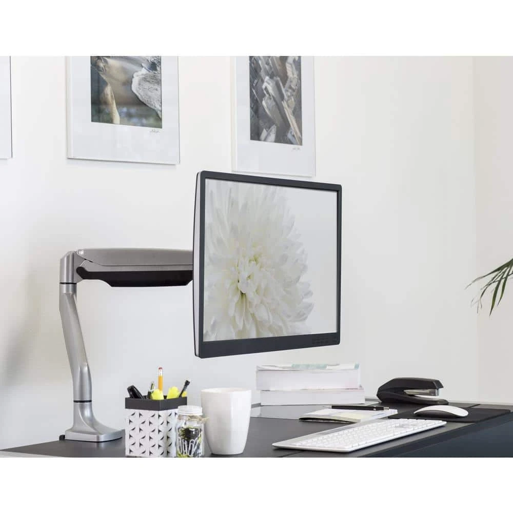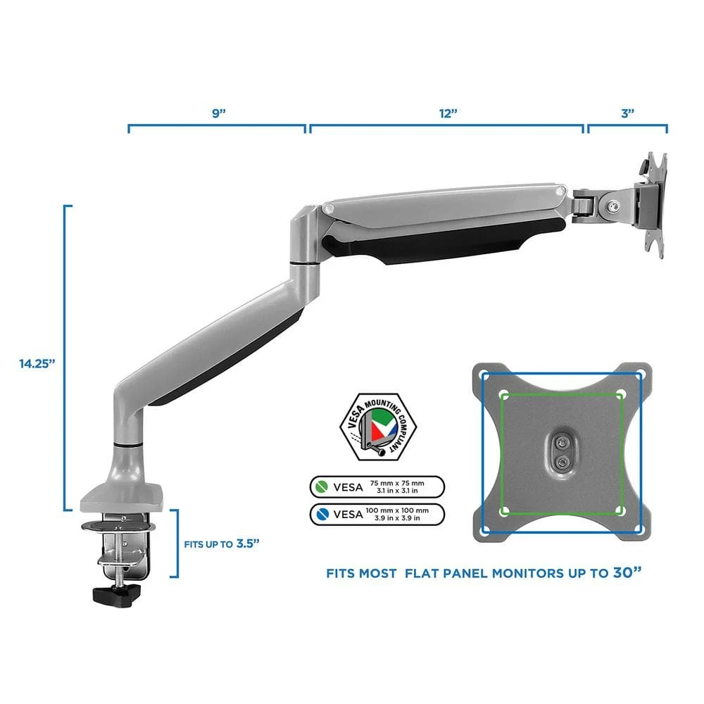 - Gas spring arm makes adjusting a breeze and is height adjustable up to 13 in.