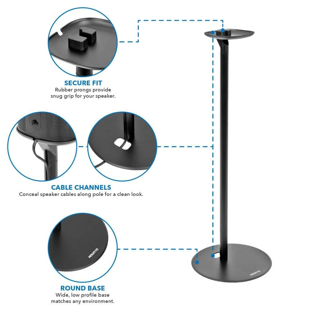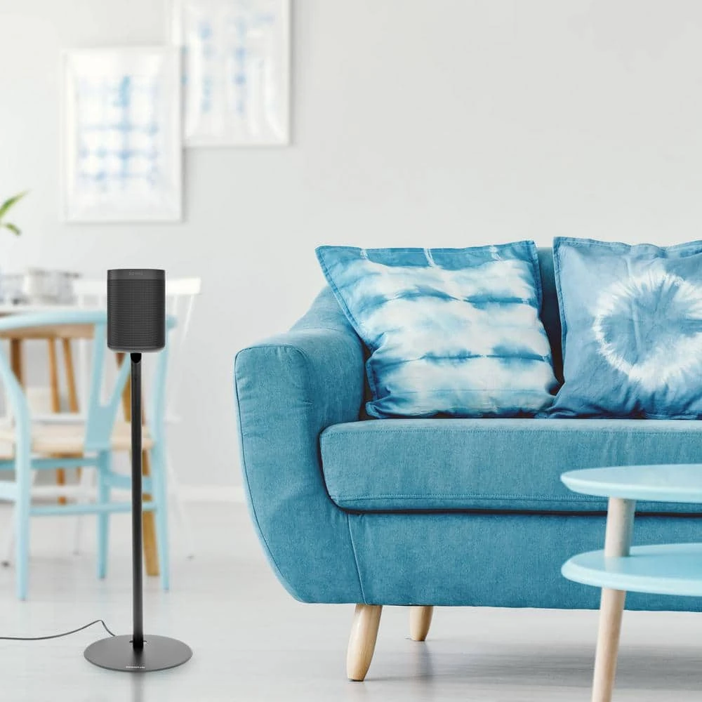 Featuring our intuitive press-fit cable management system built right in the stand, the Speaker Floor Stand for Sonos instantly conceals any wires so you can keep the party going all night long. We’ve precision-engineered our Sonos stand using high-end steel and aluminum, making them durable, wobble-free, and sturdy. The base and stand hold your speakers up 28 in. from the ground, inherently enhancing its surround sound capabilities. And unlike other Sonos play 1 stands, our Sonos playstands are easy to install.