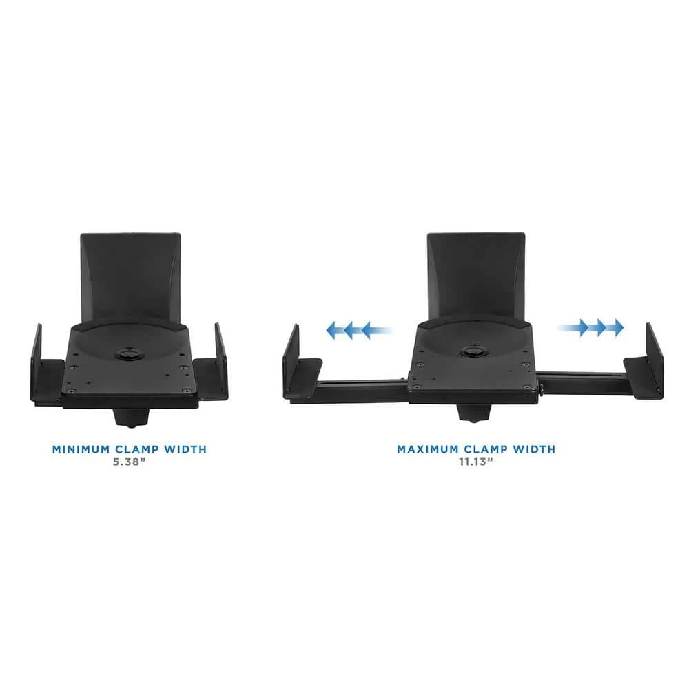 The MI-SB37 is ideal for medium to large bookshelf speakers, satellite speakers, studio monitors, surround sound and amplified speakers weighing up to 55 lbs. Elevate your speakers for a better sound experience. The swivel and tilt features allow you to find the optimum audio settings in your environment. Cable management feature keeps wires organized. Padded clamps and base help protect your speakers.