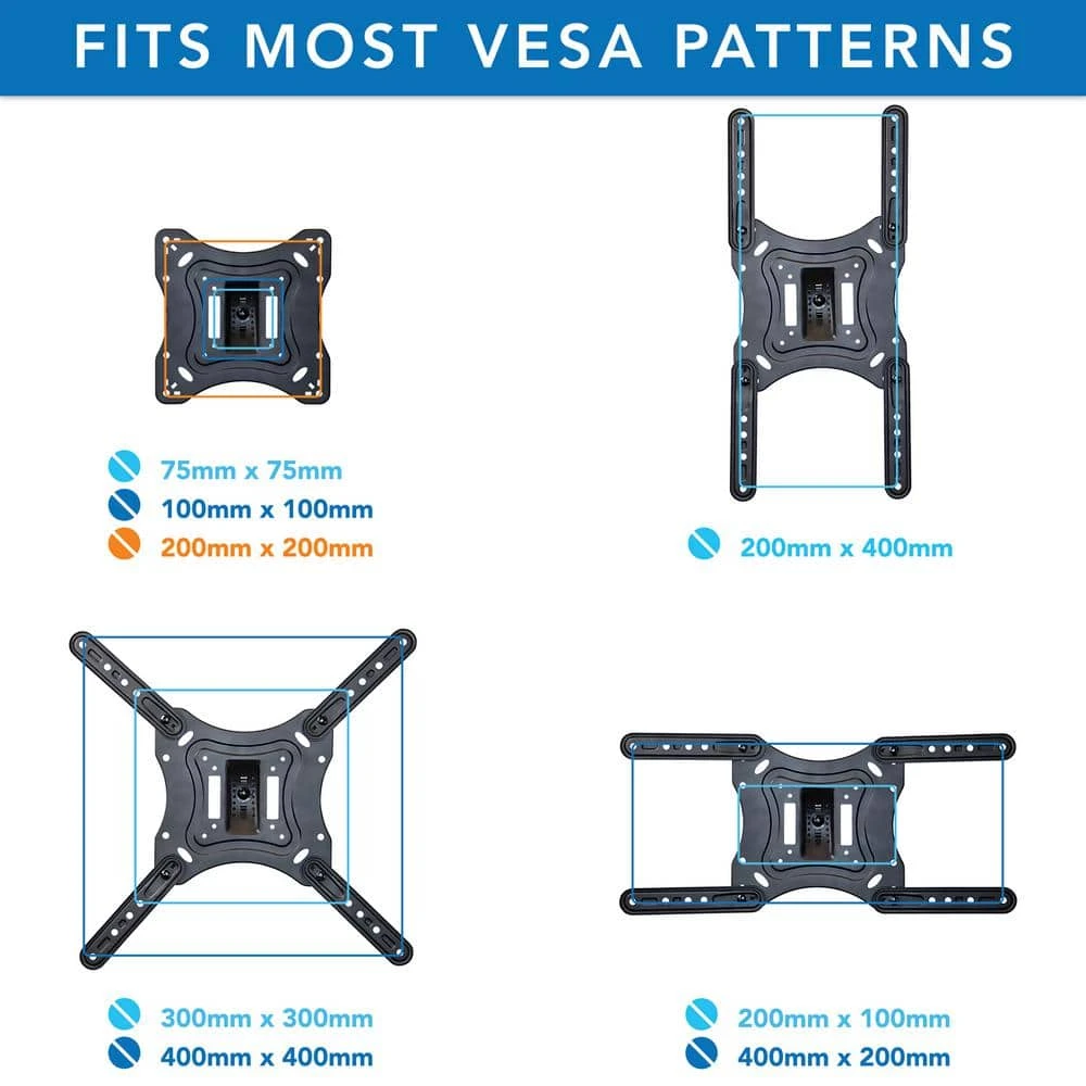 - Compatibility: VESA patterns from 75x75mm to 400x400mm and screens from 23 in. to 55 in.