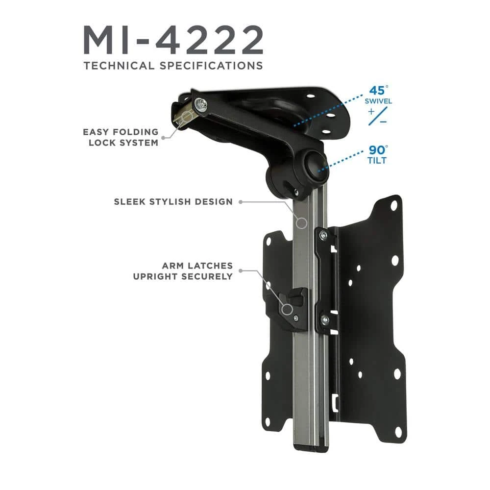- MI-4222 fits TVs with VESA patterns from 75x75mm to 200x200mm, screens up to 37″, and holds up to 44lbs