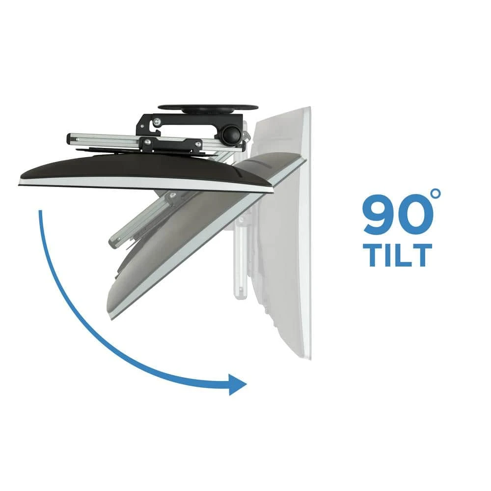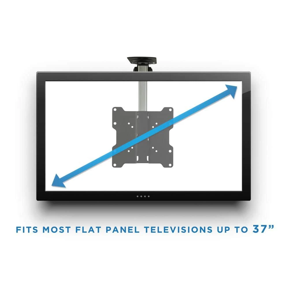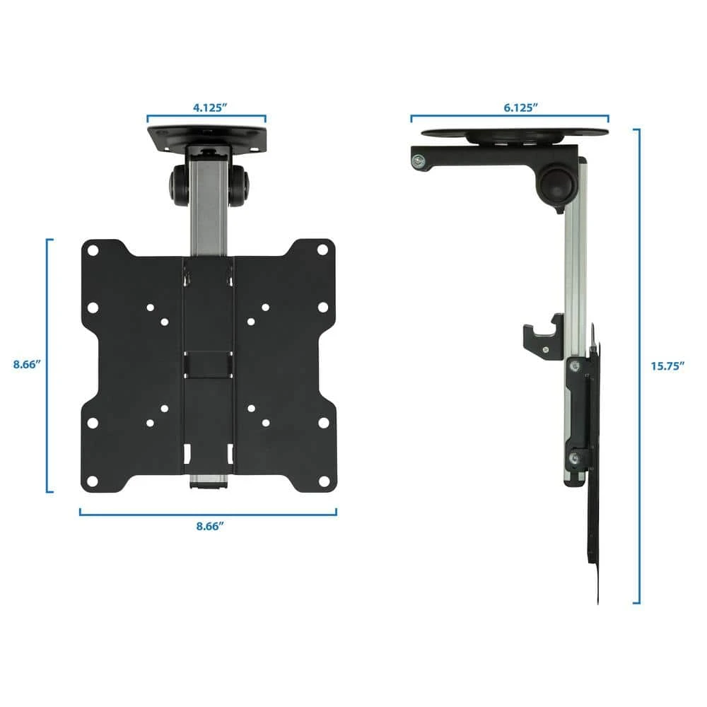 This under cabinet TV mount makes a great space saver and organizer for your home or work place. The flip up mount keeps your screen out of sight until you want it. Fit it under a cabinet or on your ceiling to make viewing your display more comfortable and more convenient. The swiveling feature and adjustable height allows you to find the perfect TV position for a better viewing experience.