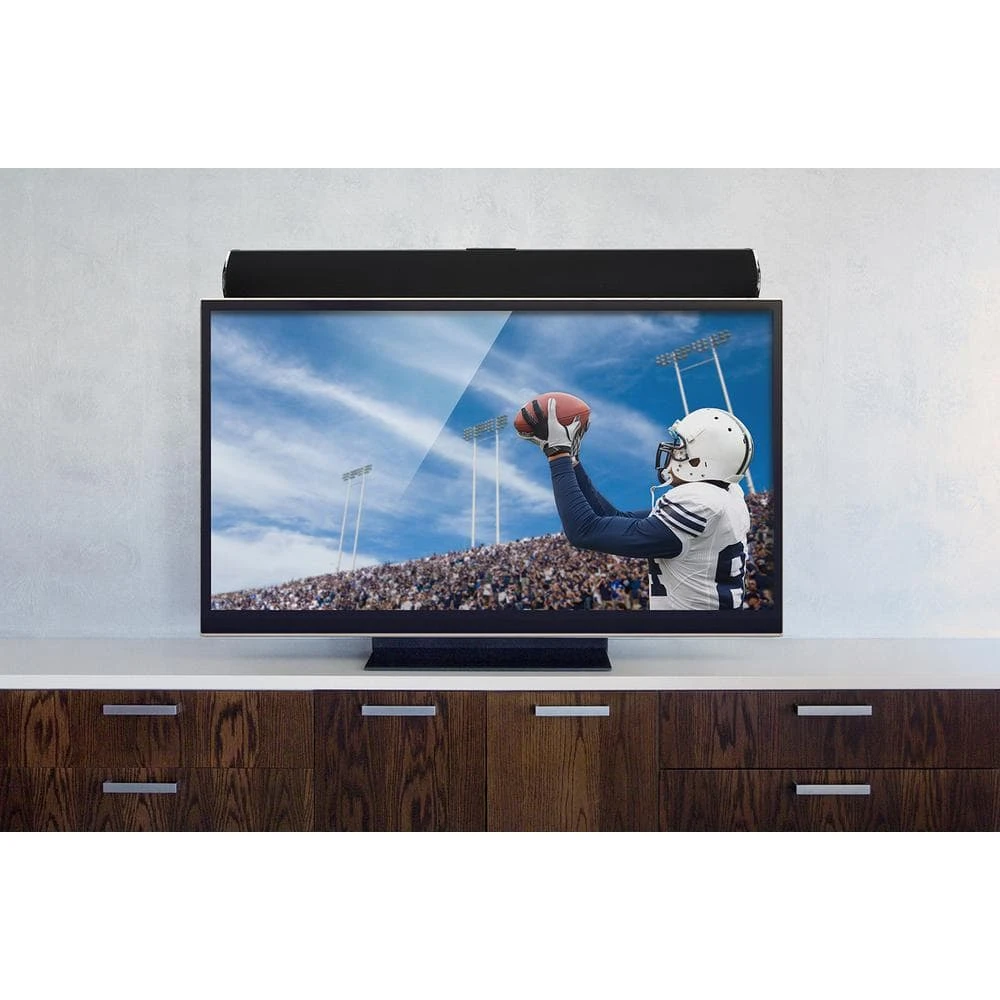 - Mounts directly to the TV or to the TV bracket, eliminating the need for wall mounting and delivering a clean look